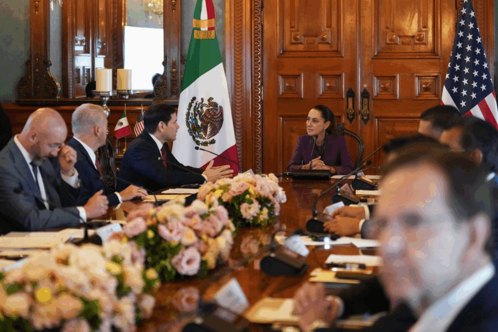 La presidenta Claudia Sheinbaum anunció un programa de cooperación en seguridad fronteriza y aplicación de la ley con Estados Unidos, tras reunirse en Palacio Nacional con el secretario de Estado, Marco Rubio.