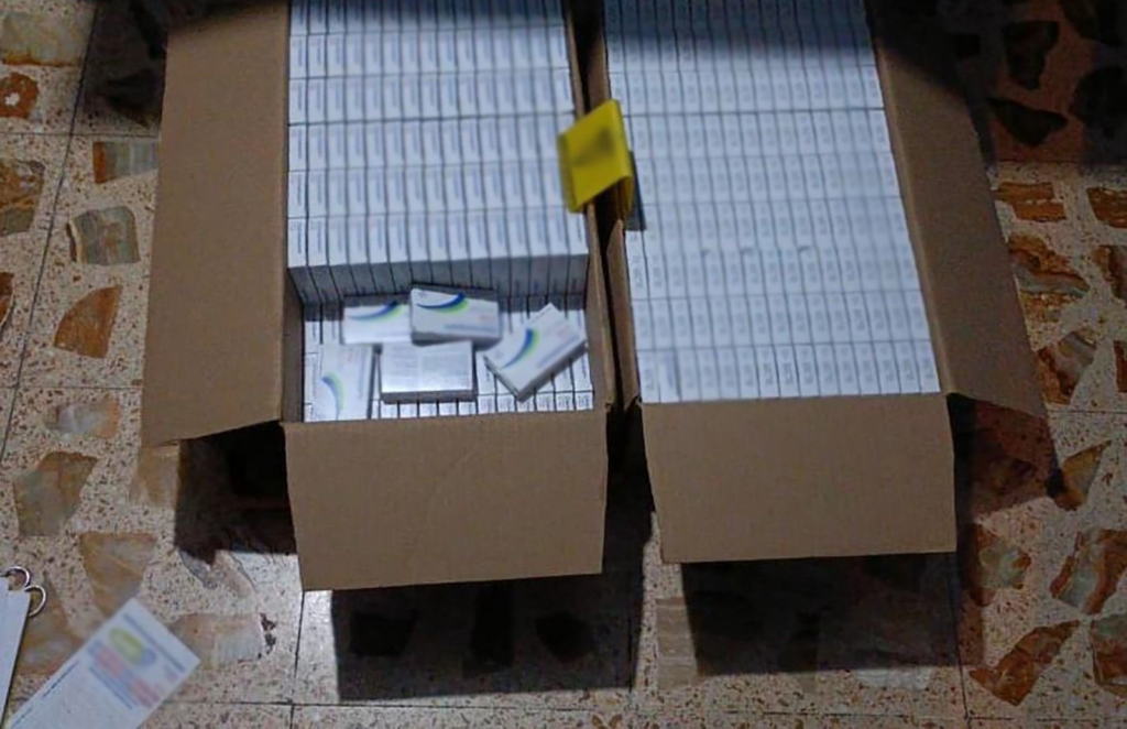 Las autoridades aseguraron 110 dosis de vacunas falsas contra VPH, 22 vacunas para neumococo, nueve vacunas contra sarampión, mil etiquetas para cajas de vacunas, 15 mil dosis de clonazepam, cocaína, cartuchos y equipo electrónico.