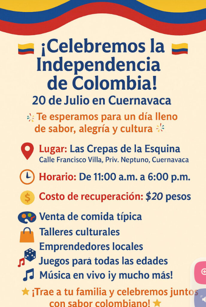 La Asociación de Colombianos en Morelos, las y los invita a celebrar la independencia de