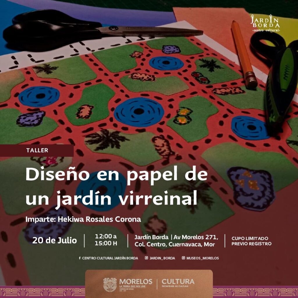 papel de un jardín Virreinal, edad mínima para participar es de 8 años y se impartirá este domingo
