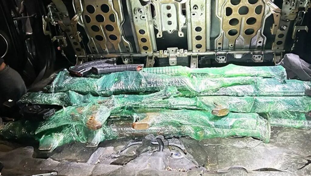 De acuerdo con autoridades estadounidenses, el aseguramiento ocurrió el 19 de abril cuando una mujer de 41 años intentaba cruzar la frontera acompañada por tres menores. Durante inspección secundaria, agentes localizaron un compartimento oculto en el vehículo donde se escondía el arsenal.