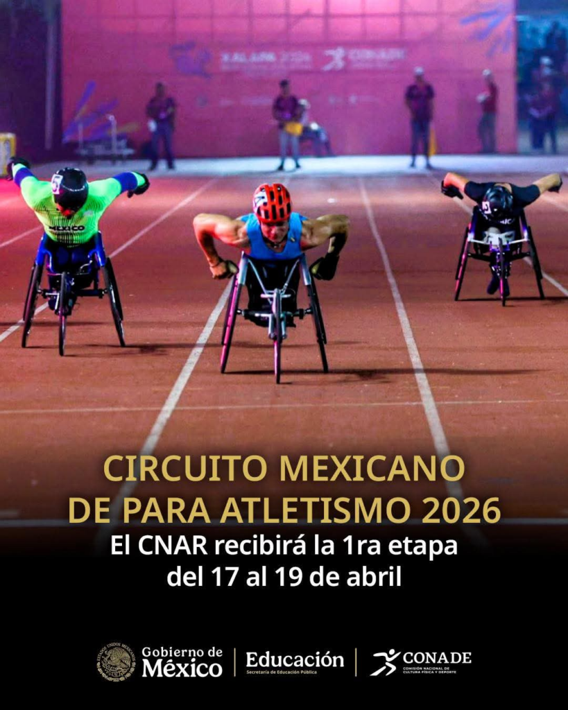 El programa “Yo Soy CNAR” será el marco de las competencias del Circuito Mexicano de Para Atletismo 202, convocando a todos los deportistas nacionales en las categorías juvenil y libre, en ambas ramas. Este evento busca reunir al talento del país en un espacio de alto rendimiento, fomentando la participación y el desarrollo competitivo de atletas con discapacidad.