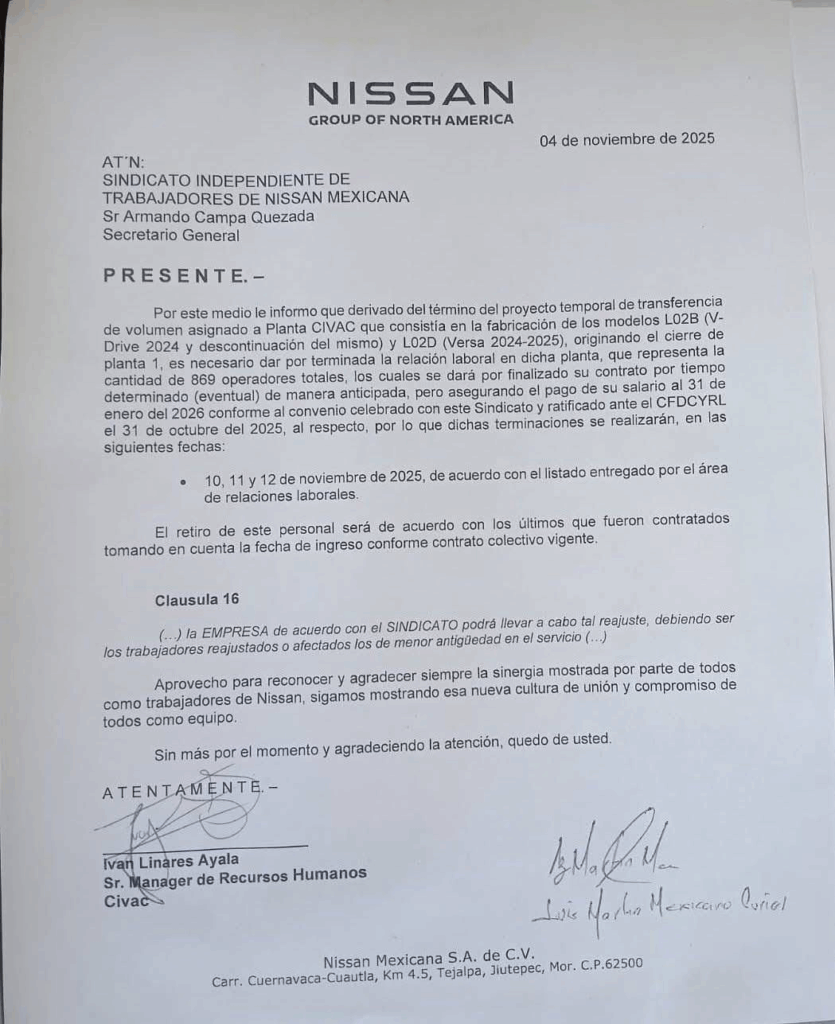 Esta semana comenzó el proceso de cierre de la planta de Nissan en Jiutepec, tal como se había anunciado. La automotriz japonesa dio el primer paso al dar de baja a los trabajadores temporales.