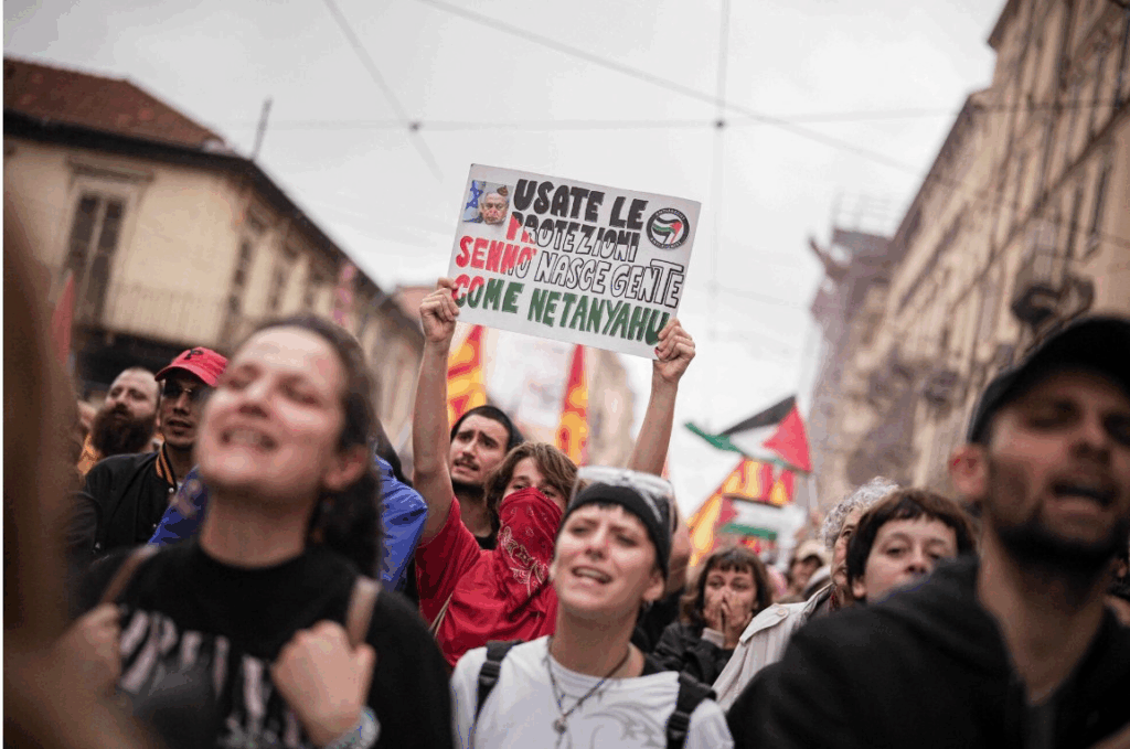 Los sindicatos y organizaciones estudiantiles denunciaron la “inercia” del gobierno italiano y de la Unión Europea ante la crisis humanitaria en Gaza, mientras que el gobierno de Giorgia Meloni mantiene su posición aliada con Israel, sin reconocer formalmente un Estado palestino.