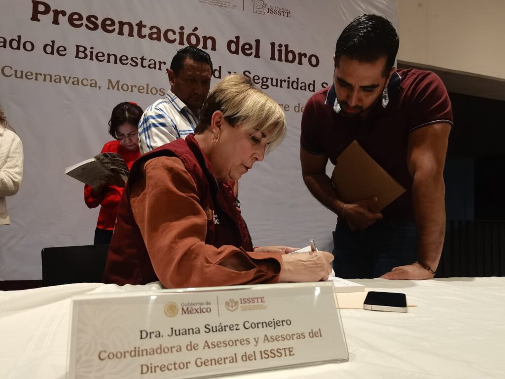 El Instituto de Seguridad y Servicios Sociales de los Trabajadores del Estado (ISSSTE) llevó a cabo la presentación del libro “Estado de Bienestar, Salud y Seguridad Social” en el Museo de Arte Contemporáneo Juan Soriano, en un espacio dedicado al diálogo, la reflexión y el encuentro con la comunidad morelense.