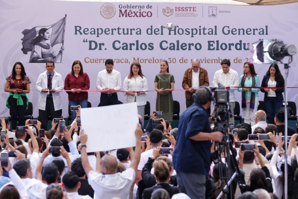 La Presidenta de México, Claudia Sheinbaum Pardo, y el director general del Instituto de Seguridad y Servicios Sociales de los Trabajadores del Estado (ISSSTE), Martí Batres Guadarrama, encabezaron la reapertura del Hospital General “Dr. Carlos Calero Elorduy”, ubicado en Cuernavaca, Morelos, que beneficiará a 157 mil 752 derechohabientes, luego de ser rehabilitado a petición de la comunidad.