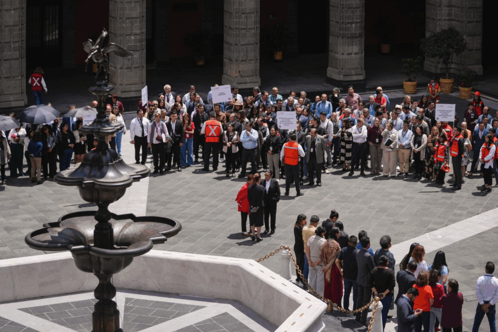 La presidenta Claudia Sheinbaum Pardo participó este viernes en el Segundo Simulacro Nacional 2025, al desalojar su oficina en Palacio Nacional y dirigirse junto con trabajadores a un punto de reunión seguro.