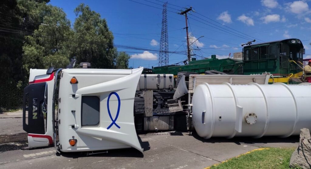 Una pipa de hipoclorito de sodio vacía fue arrollada este lunes por un tren en la colonia La Purísima Tulpetlac, tras intentar ganarle el paso en la vía Morelos, a la altura de la esquina con Nuevo León. El impacto provocó la volcadura de la unidad, lo que obligó al cierre de la vialidad en ambos sentidos.