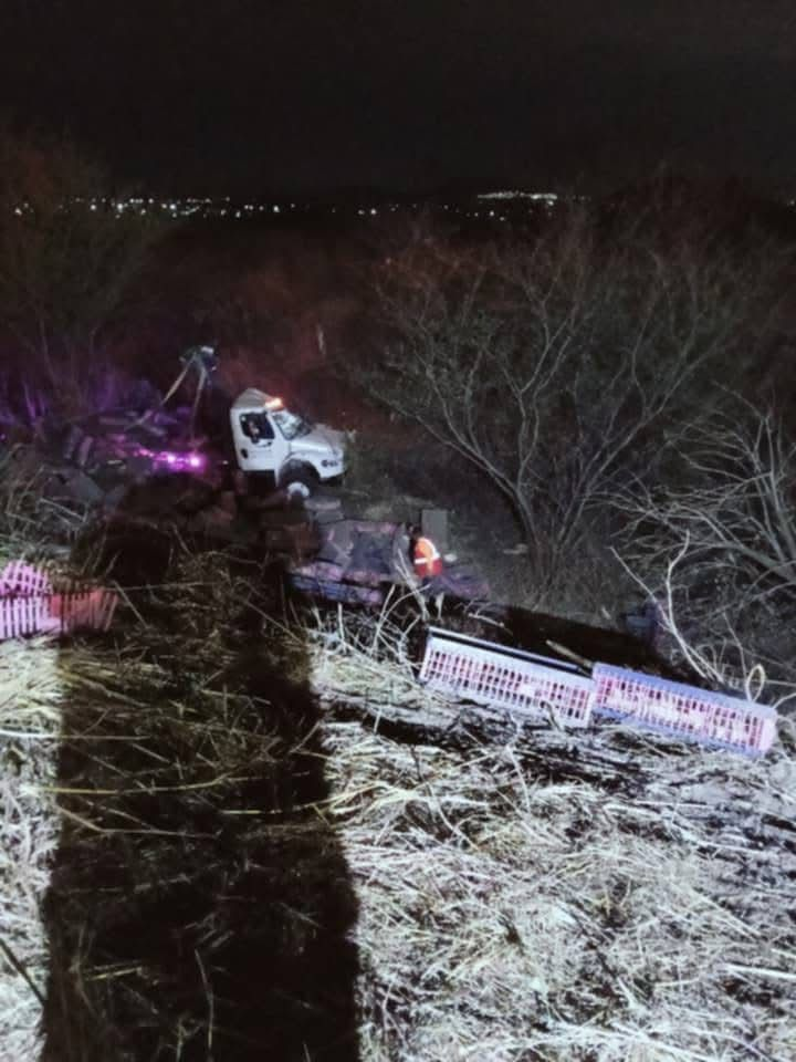 El hecho fue reportado alrededor de las 23:40 horas, cuando se alertó a los números de emergencia sobre un camión de carga que transportaba pollo y había perdido la estabilidad.