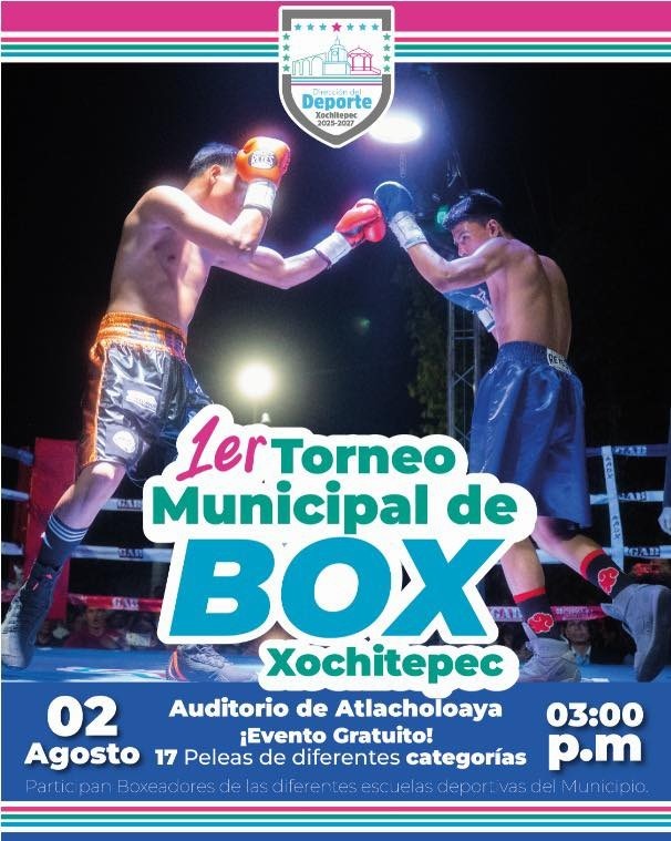 Este sábado 2 de agosto, el municipio de Xochitepec vivirá una intensa jornada deportiva con la realización del Primer Torneo Municipal de Box, organizado por el Ayuntamiento a través de la Dirección del Deporte Municipal. El evento se llevará a cabo en el Auditorio de Atlacholoaya, a partir de las 3:00 de la tarde, y contará con la participación de alumnos de distintas escuelas de boxeo del municipio, quienes protagonizarán un total de 17 combates en diversas categorías. Este torneo tiene como objetivo fomentar la práctica del boxeo amateur, impulsar a los talentos locales y brindarles un espacio competitivo donde puedan medir su nivel ante otros púgiles de la región. Además, servirá como plataforma para detectar y desarrollar futuros representantes estatales y nacionales. Cabe destacar que varios de los jóvenes boxeadores del municipio han formado parte del representativo de Morelos en los Juegos Nacionales CONADE, e incluso algunos ya han tenido la oportunidad de debutar en el profesionalismo.